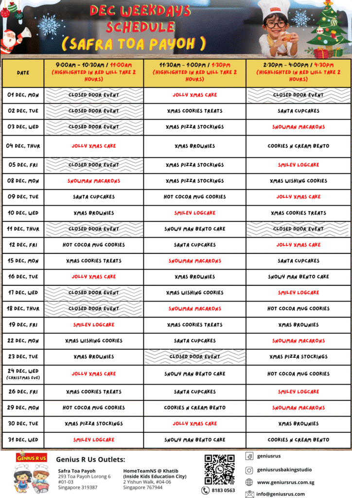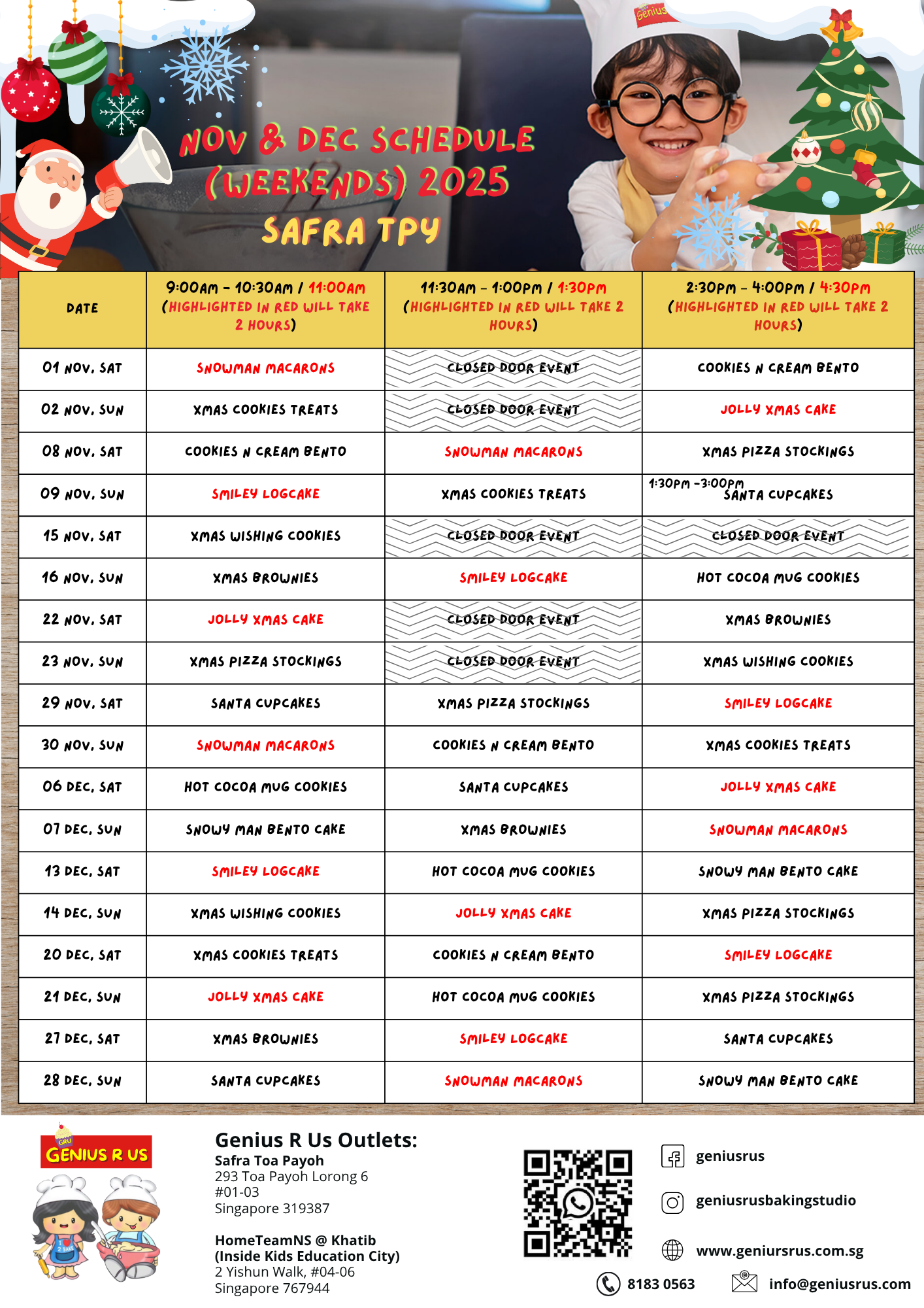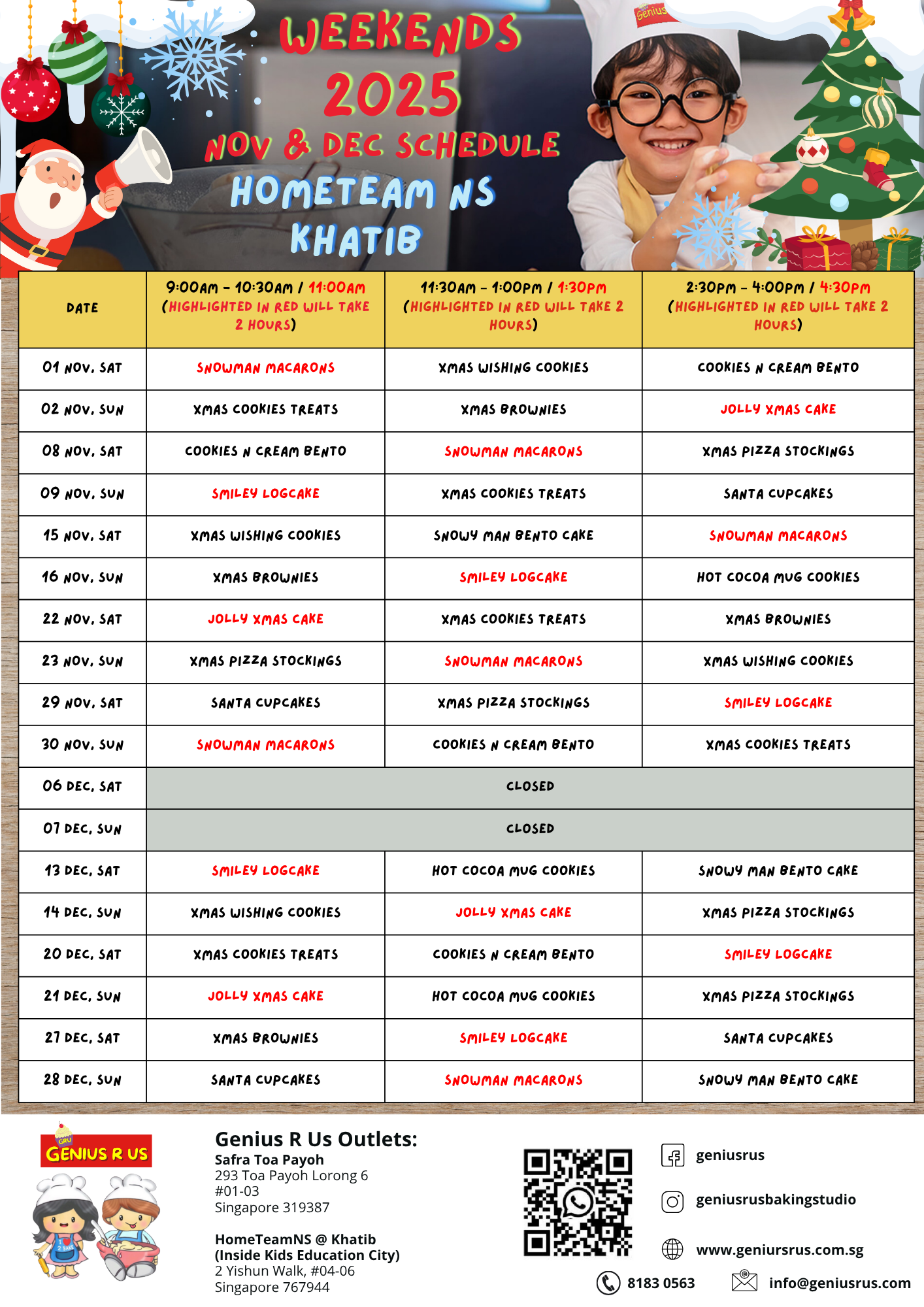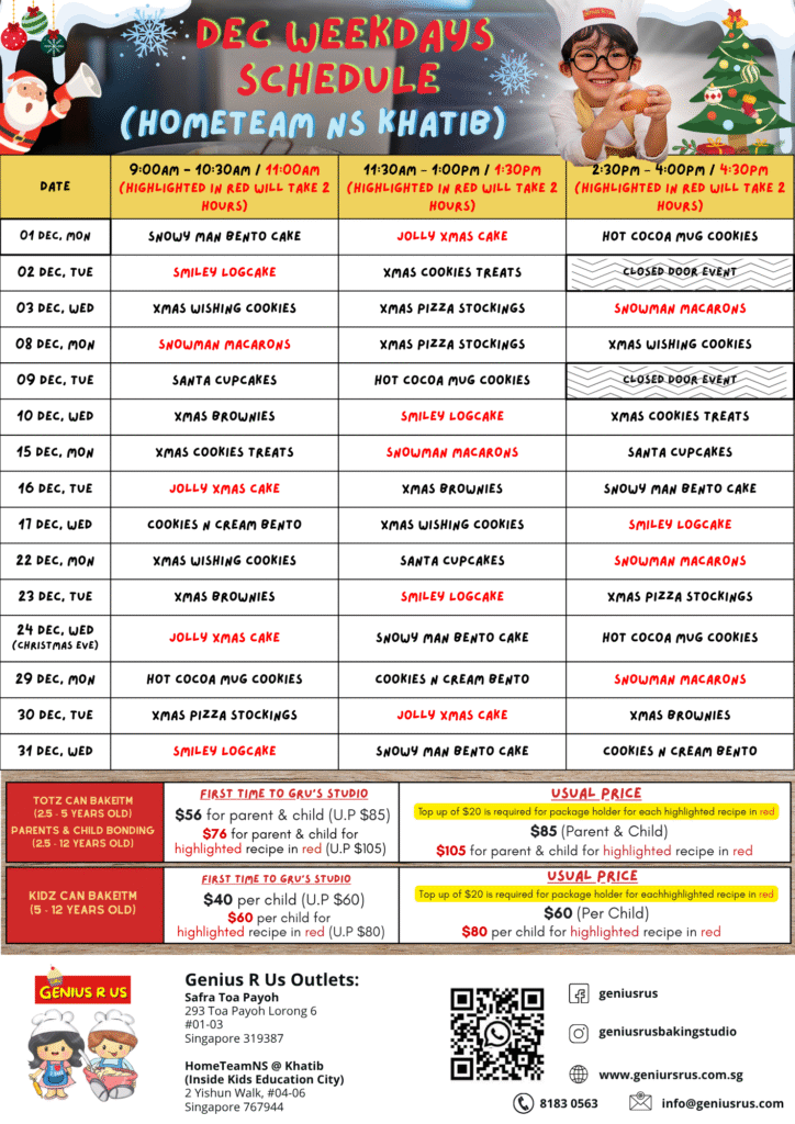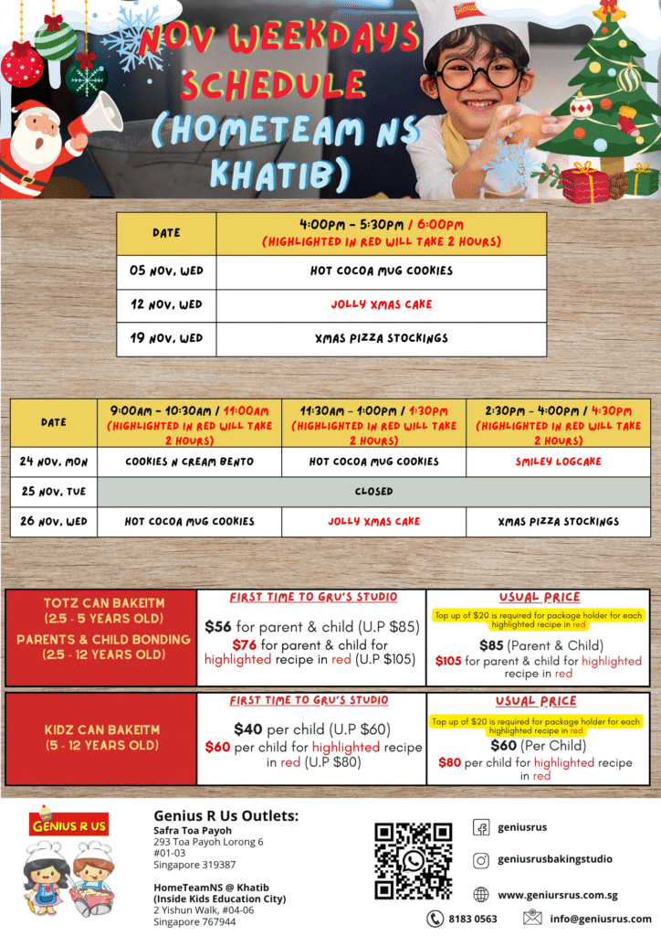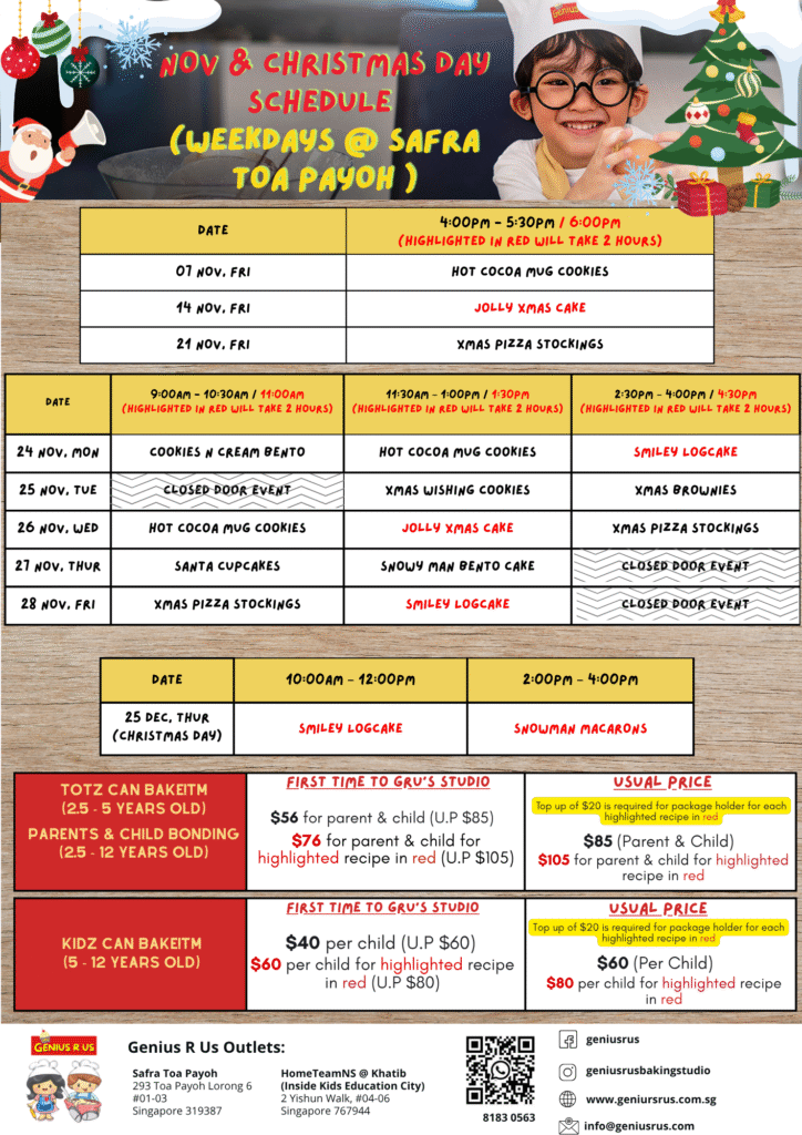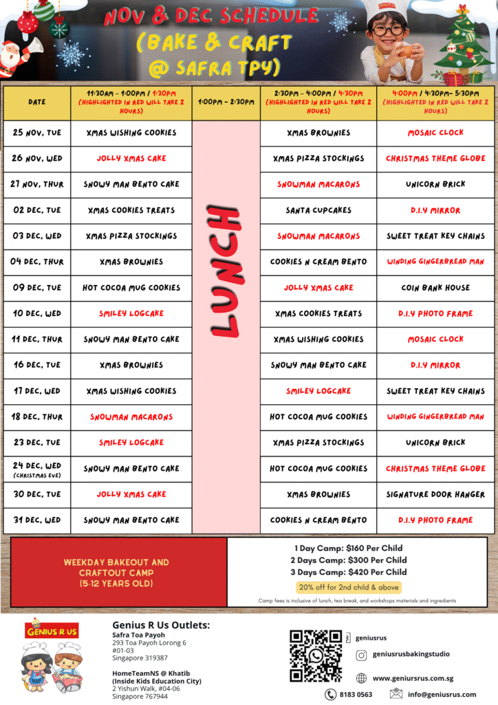 Join our fun GRU Bakeout workshop. We have exciting workshop for your kids. Noc & Dec Bakeout Schedules 2025